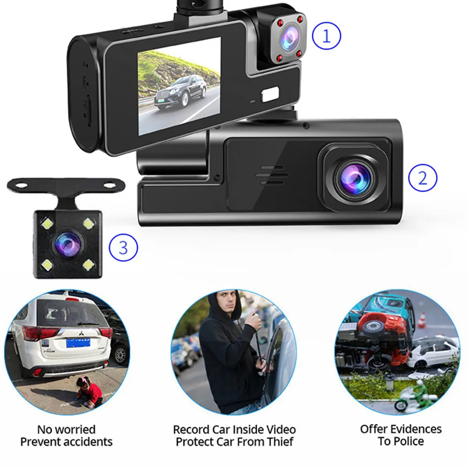 Car DVR 3 Channel 1080P Dash Cam WIFI Video Recorder 2 Inch Rear View Camera For Vehicle Black Box Car Assecories