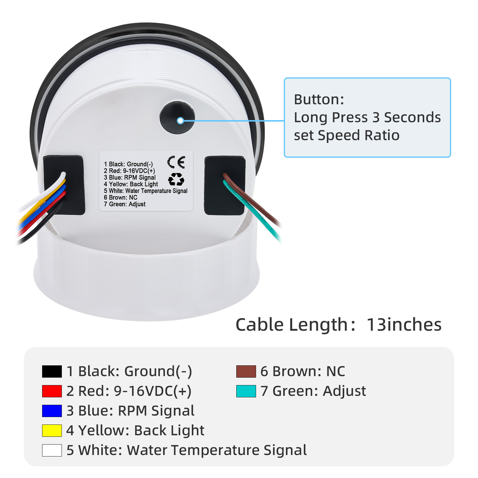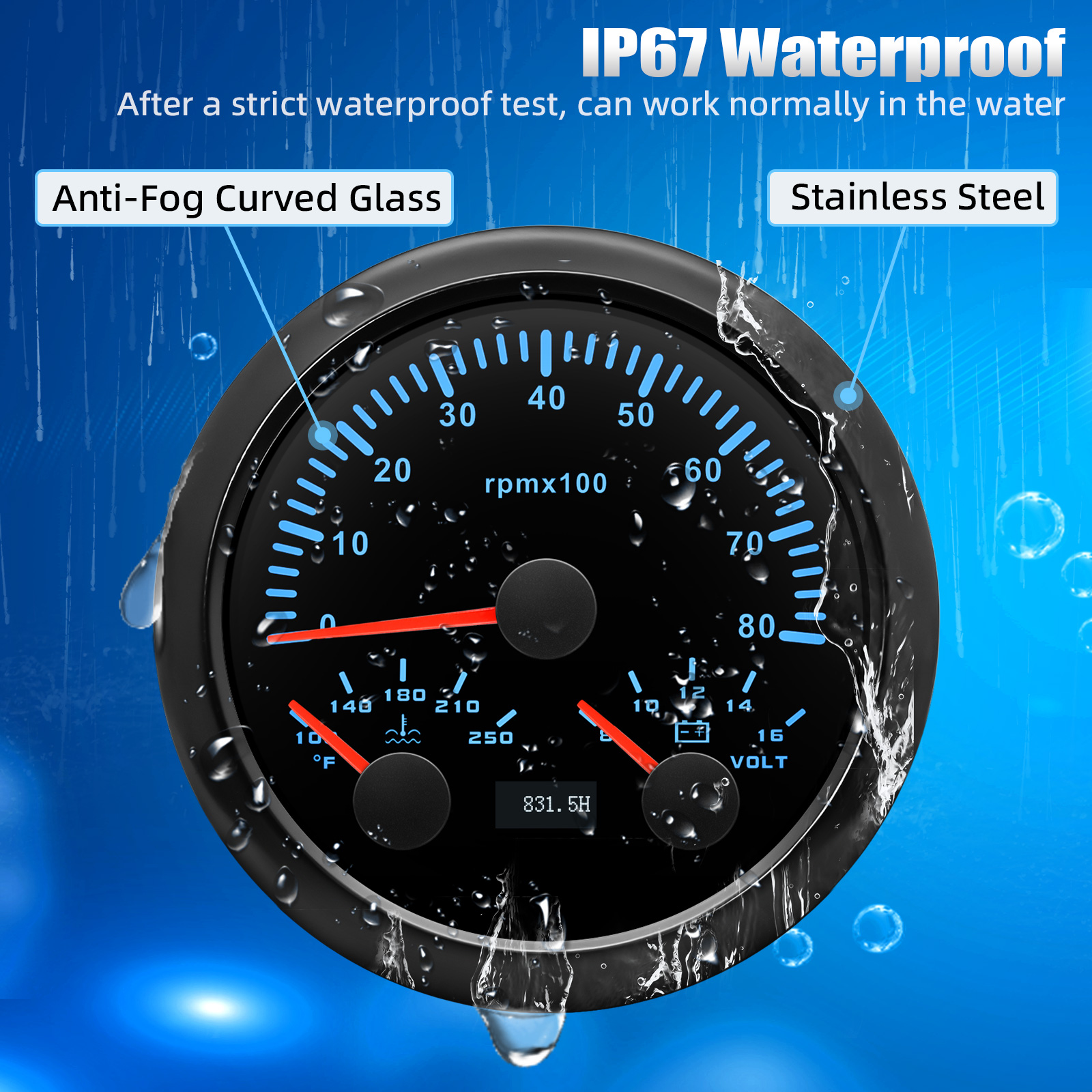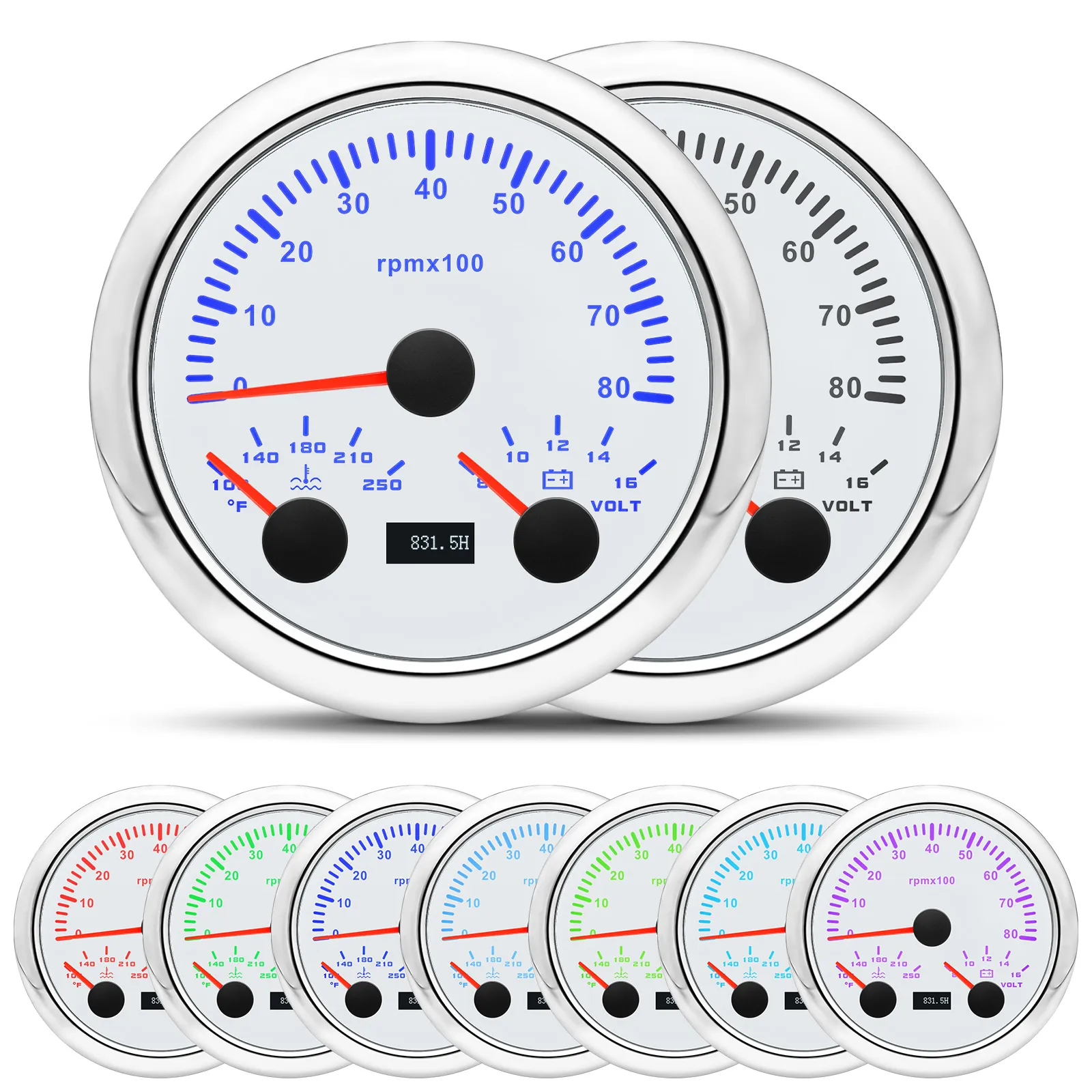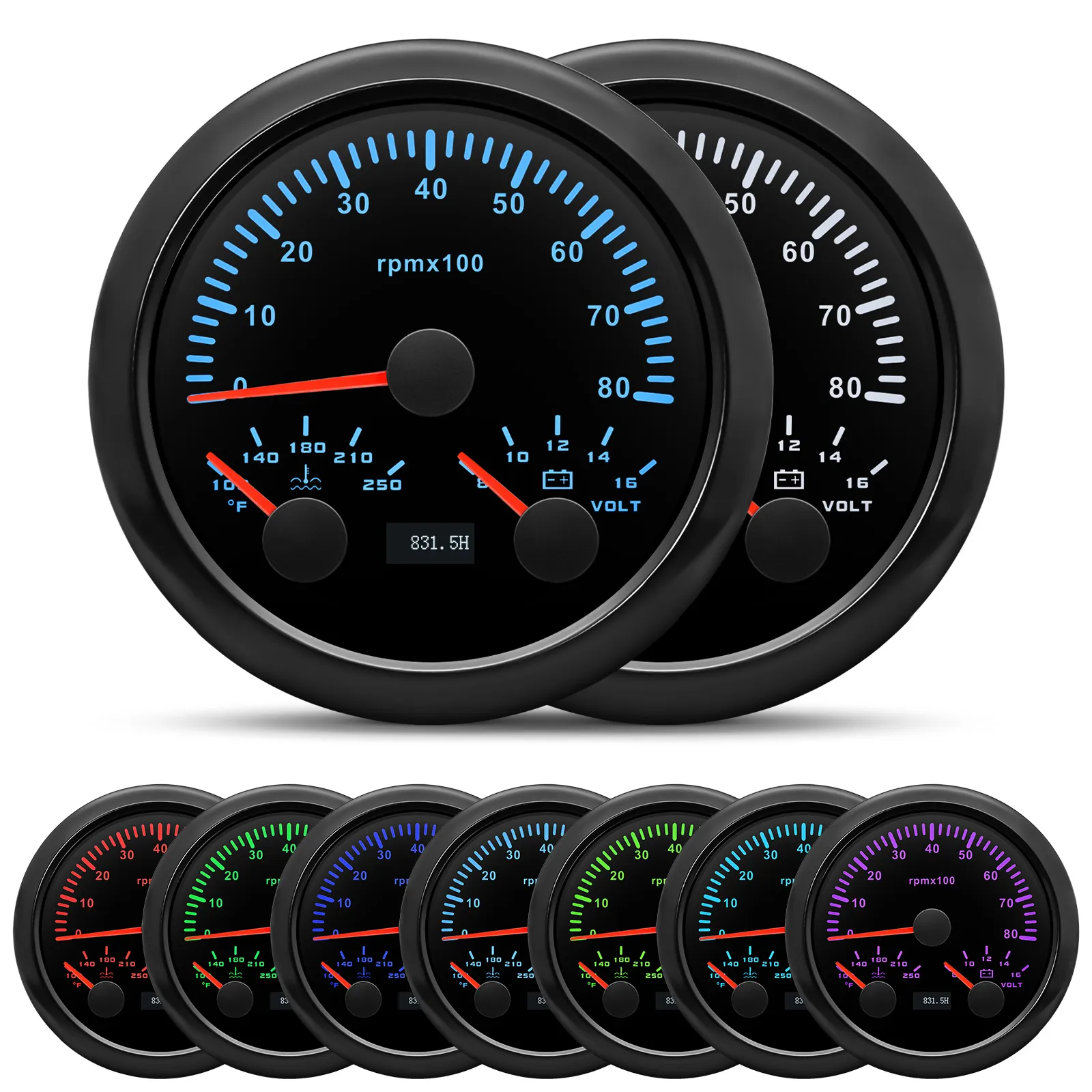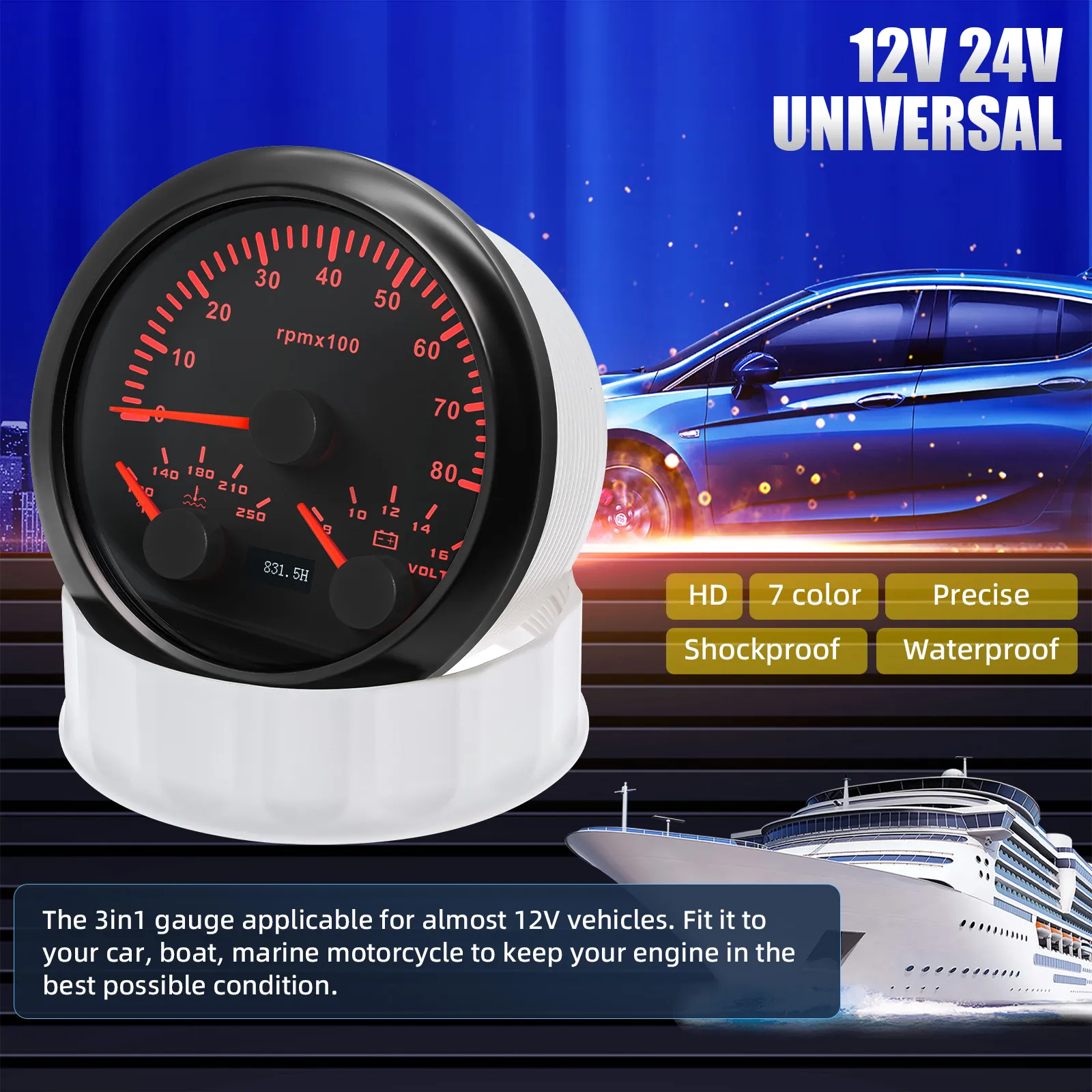 7-color backlight 3In1 Waterproof 85MM Car Gauge 8K RPM Tachometer + °F Water Temperature Voltmeter