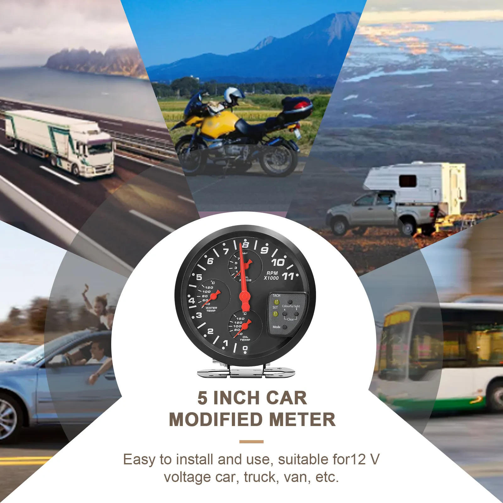5 Inch 4 in 1 Car Multifunction Gauge Tachometer Oil Pressure Oil Temperature Water Temperature Gauge Meter Support Alarm