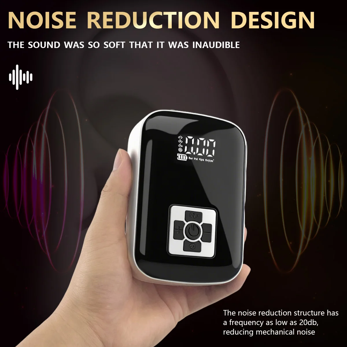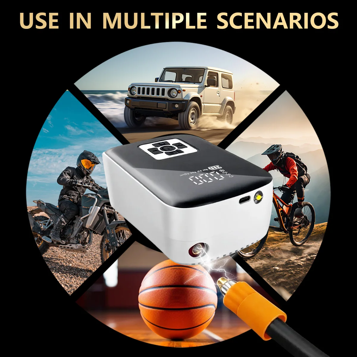 Material: ABS Color: Black+White Size: 12.5x8.5x6cm Weight: 374g Voltage: 7.4V Display: Digital display Function: Inflation, Emergency Lighting Category: Inflatable Pump..