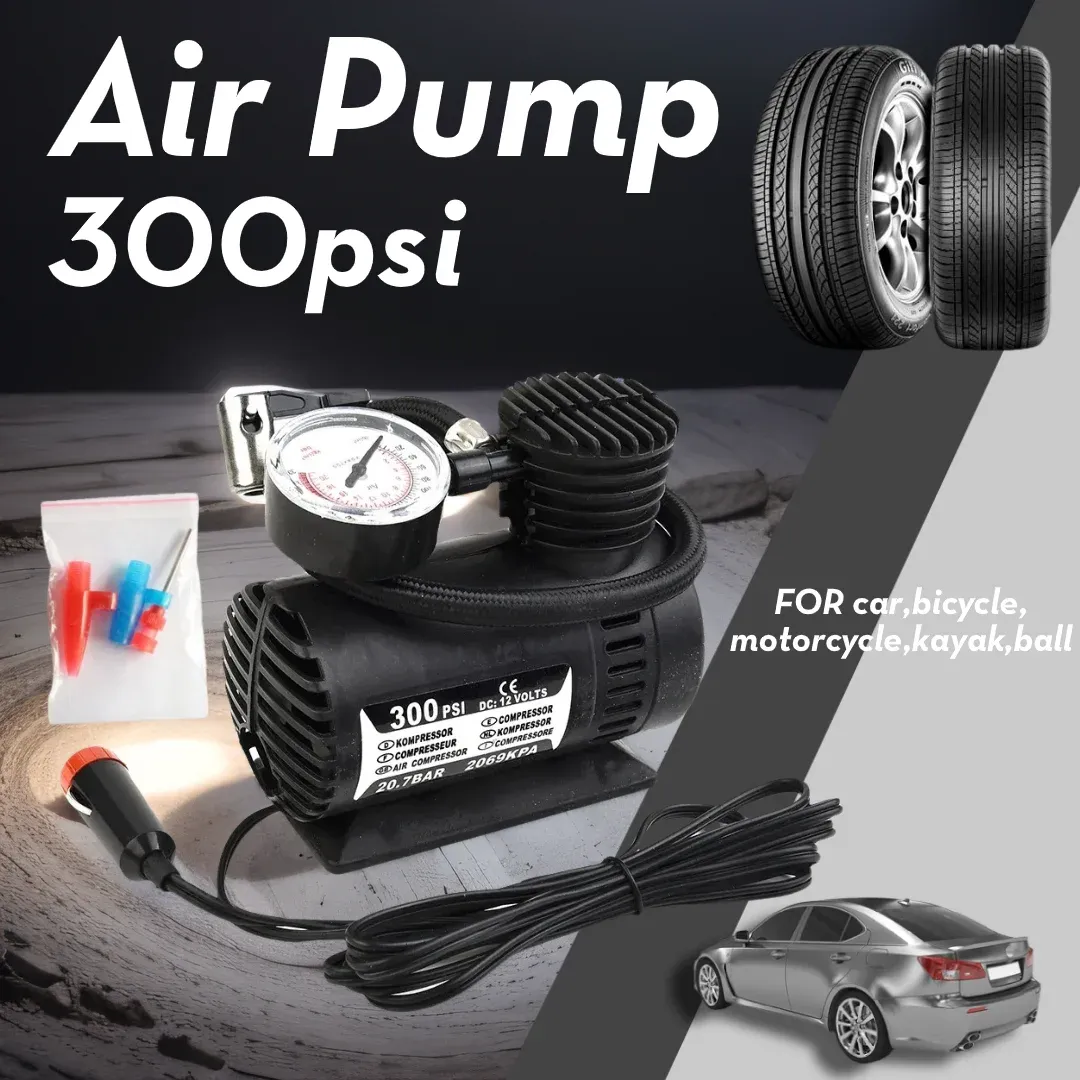 300psi Car Electric Air Pump 12V Electric Tire Inflator with Gauge Mini Air Compressor Auto Inflatable Pump Heavy Duty Tire Infl