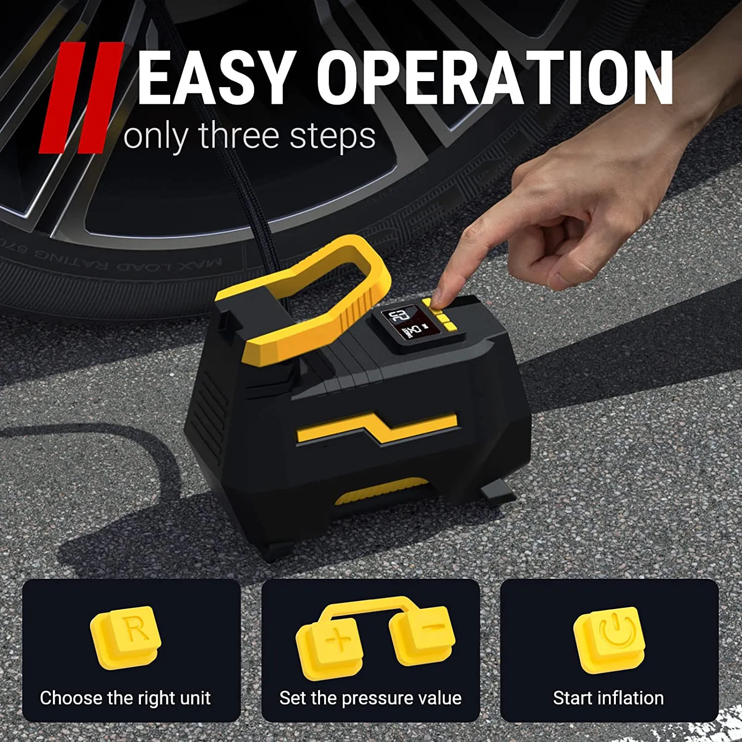 110V-230V Car Tyre Inflator Air Compressor Dual Power DC 12V Digital Portable Electric Air Pump
