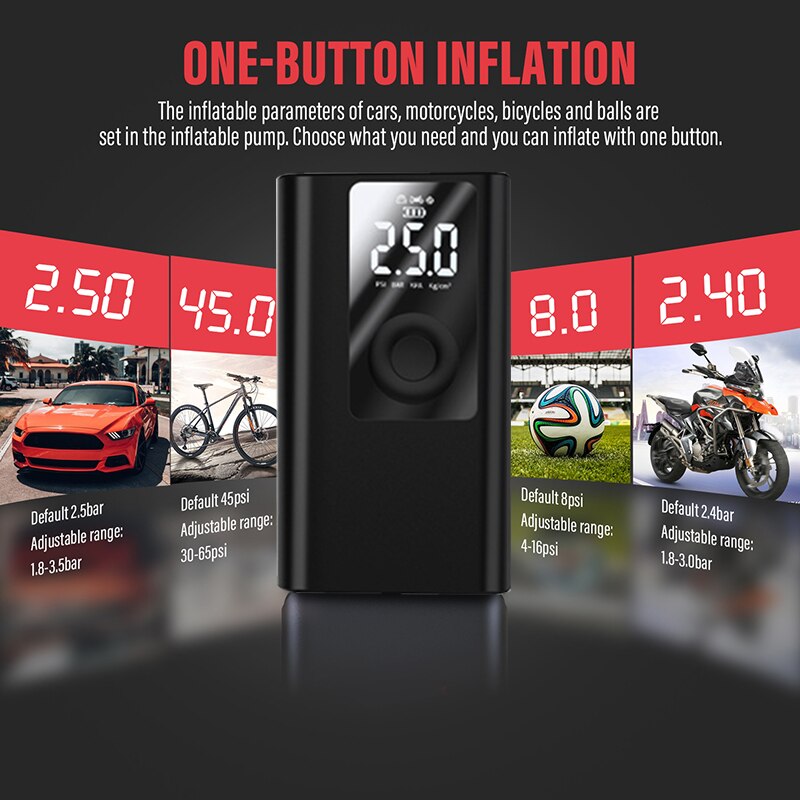 Material: Plastic Features: Digital Display Air Pressure: 100 PSI Battery Capacity: 4000mAh Color: Black Size: 14x8x4.5cm Category: Inflatable Pump ..