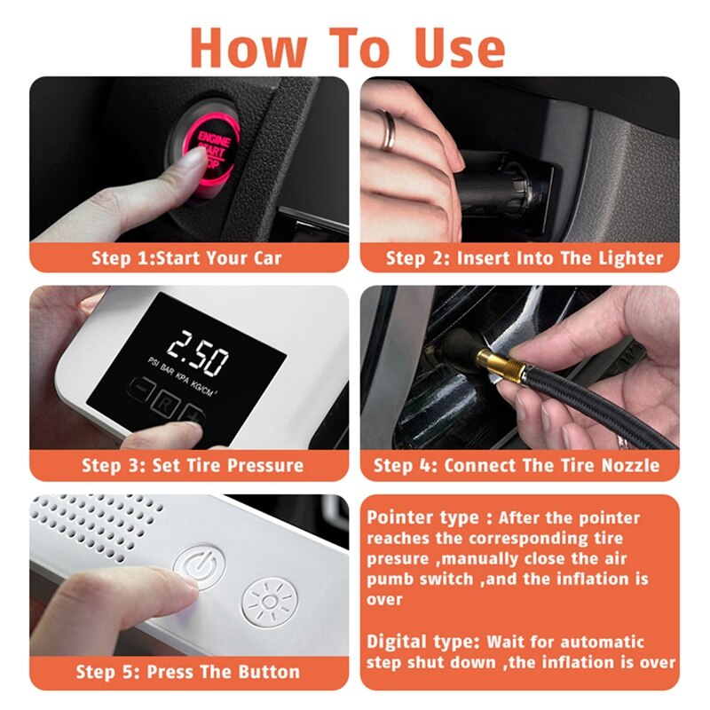 Portable Car Air Compressor 12V Electric Car Air Pump Mini Tire Inflator Auto Tyre Pump 150 PSI Tire Air Inflator Pump