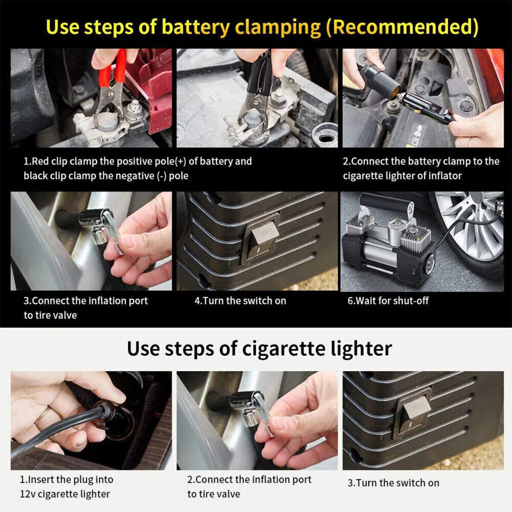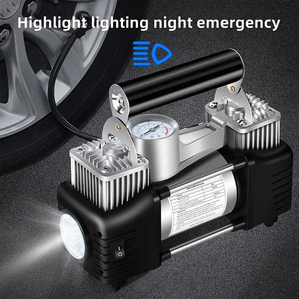 12V Portable Dual Cylinder Air Pump Heavy Duty Car Air Compressor Tyre Inflator With Digital Pressure Gauge Tire Inflatable Pump