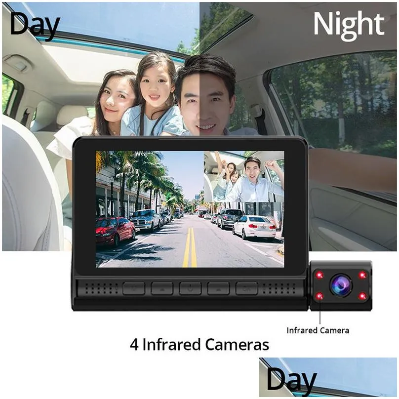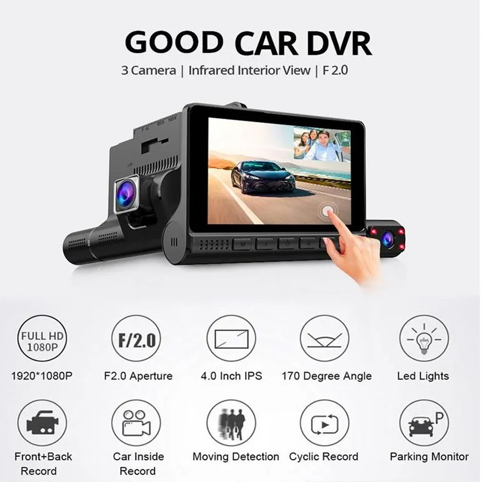 Car DVR High Quality 4 Inch HD 1080P Video Recorder Dash Cam 3 Lens Smart G-sensor Rear Camera 170 Degree Wide Angle Ultra Resolution